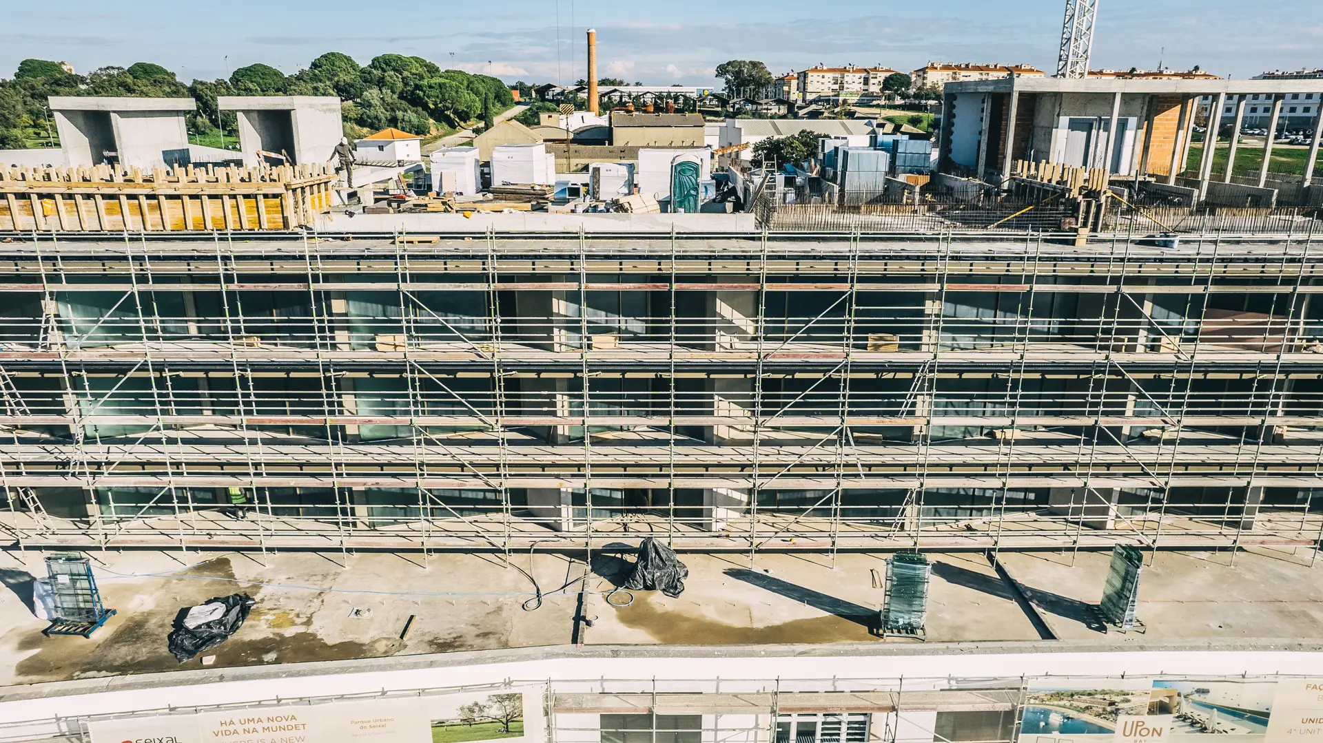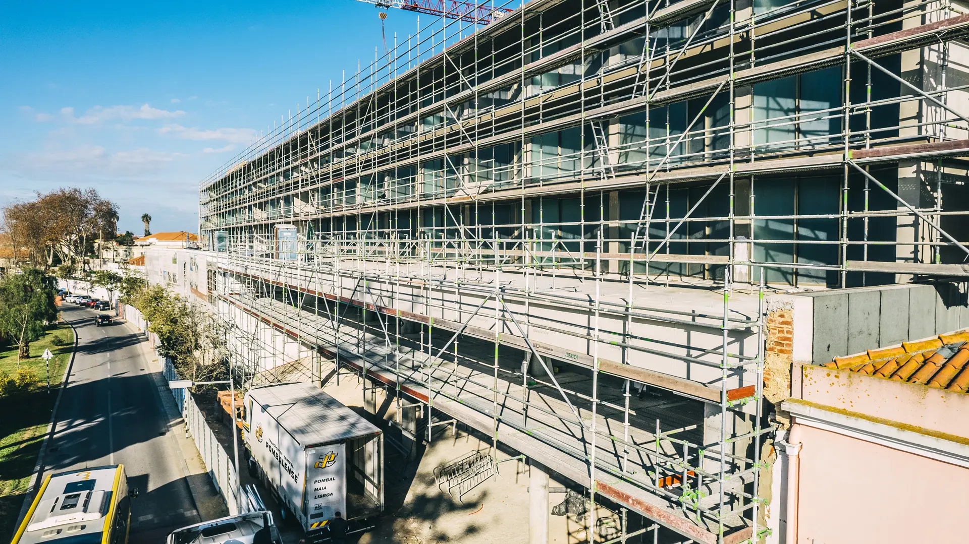 As soluções implementadas garantiram condições seguras e eficientes para a execução de todos os trabalhos em altura. Focámo-nos na estabilidade e na conformidade com as normas de segurança em todas as fases da obra, assegurando que o património industrial fosse intervencionado com o máximo rigor e eficiência técnica.