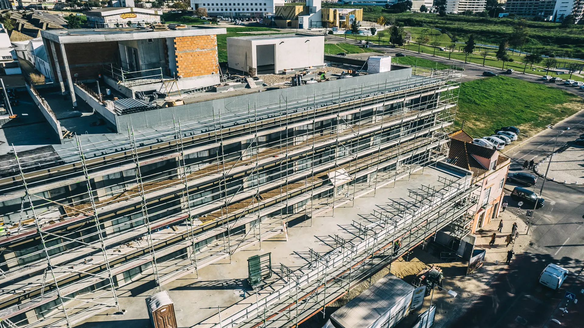A intervenção na Mundet, um projeto de reabilitação de uma antiga unidade industrial convertida em empreendimento residencial e turístico, exigiu soluções de elevada precisão técnica. A Género Inédito foi responsável pelo fornecimento, montagem e desmontagem de sistemas de andaimes de fachada, meticulosamente adaptados às características do edifício original e à complexidade da intervenção estrutural.