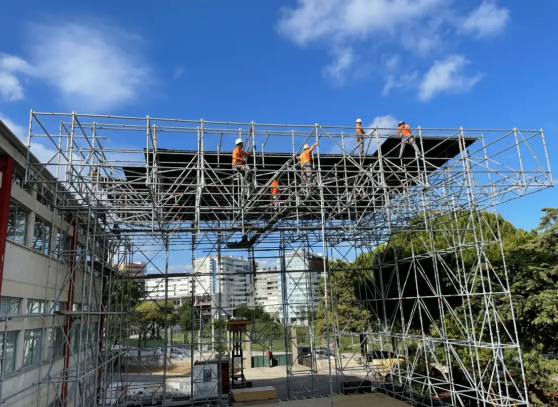 A montagem de estruturas para eventos de grande escala, como o Festival de Almada, representa um dos desafios mais exigentes e gratificantes no setor dos andaimes. O nosso trabalho neste projeto consiste em criar a base física e segura onde a expressão artística ganha vida.